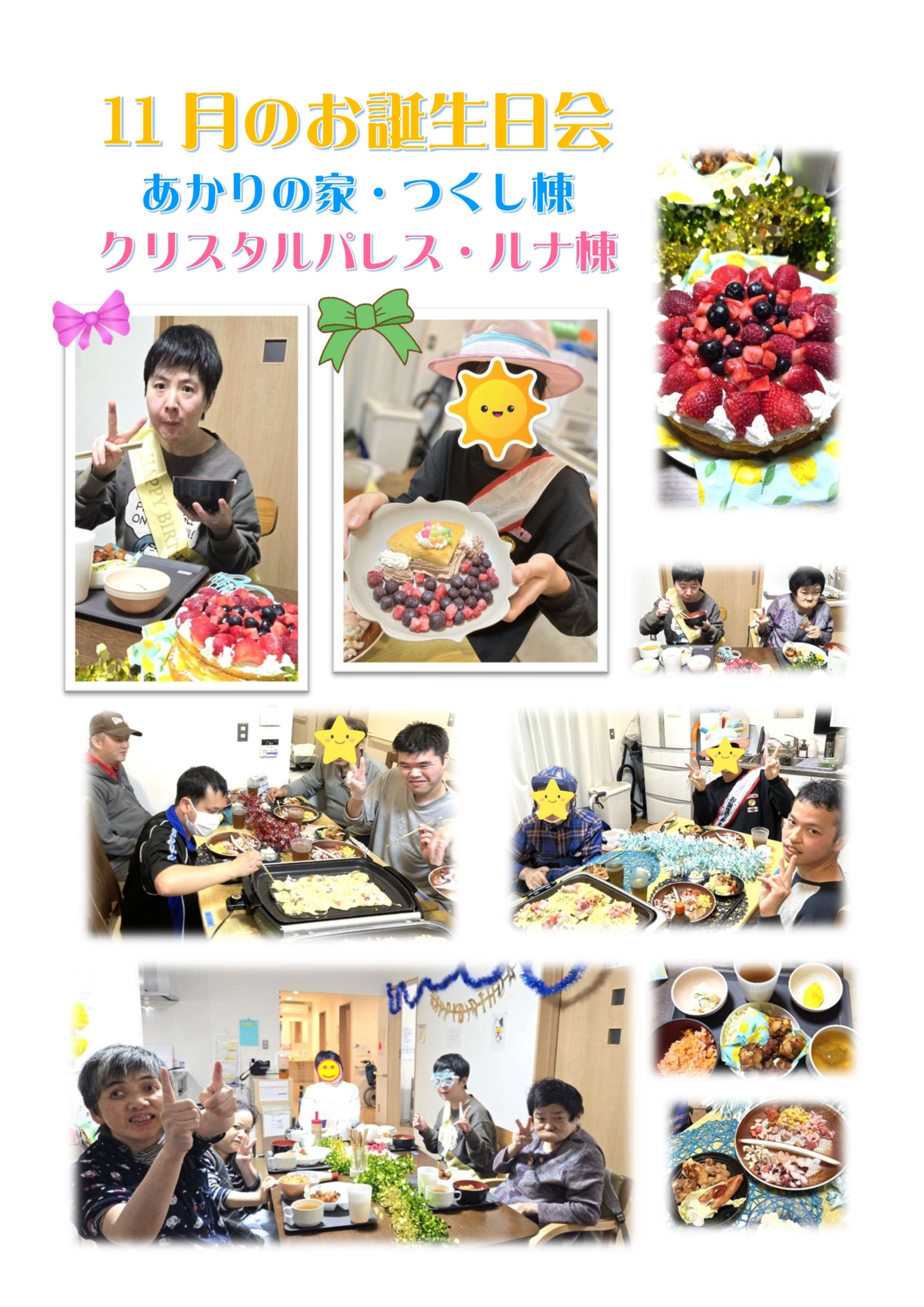 グループホーム・あかりの家とクリスタルパレスで 11月のお誕生日会を行いました…